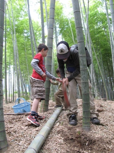 竹の子掘りも初めてだったが、地下茎がかなり硬くて、専用の鍬で断ち切るのに結構な力がいるし、